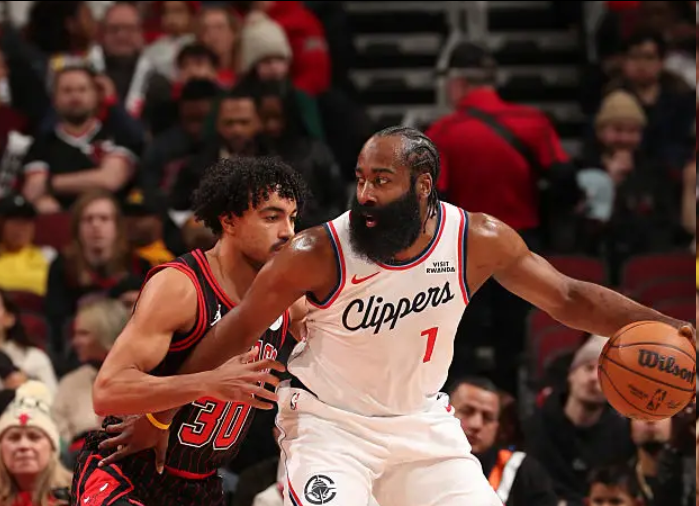 到了第三节,快船并没有放弃,科林斯追身三分+空接暴扣连得8分,帮助球队将分差追到只差10分,不过,在公牛叫了暂停之后及时调整状态,他们没有给快船太多的机会,末节初段快船落后近20分,哈登等首发五人全部被换下场,提前认输。