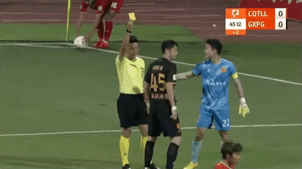 45+1’黄牌-黄威(广西平果) 对判罚表达异议