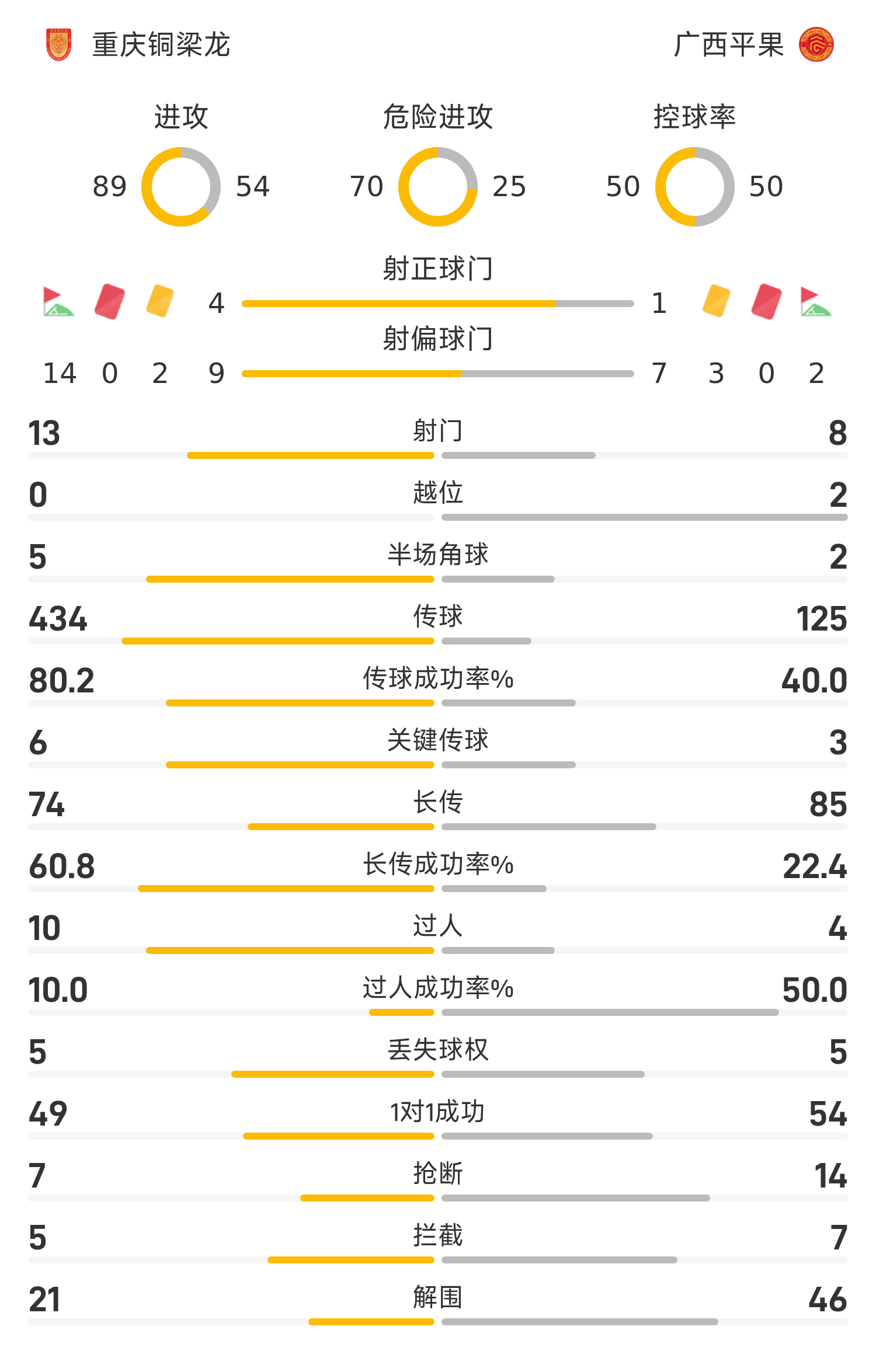 05月25日讯 25赛季中甲联赛第10轮,重庆铜梁龙0-0互交白卷闷平广西平果。